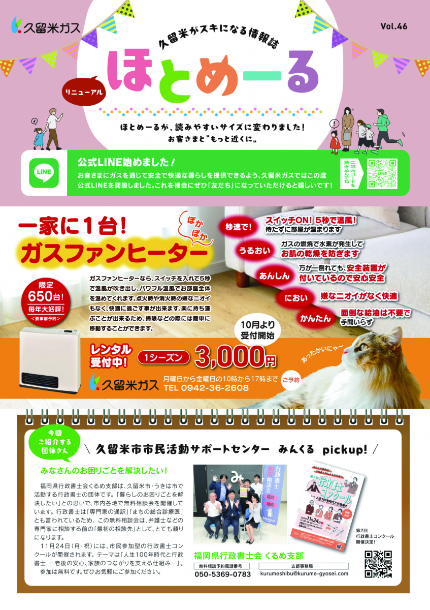 私たちの町この久留米の食、くらし、文化、自然、歴史などの素晴らしさを再発見し、久留米のみなさまのお役にたてる情報を詰め込んだ「ほとめーる」です。 ぜひご一読ください!